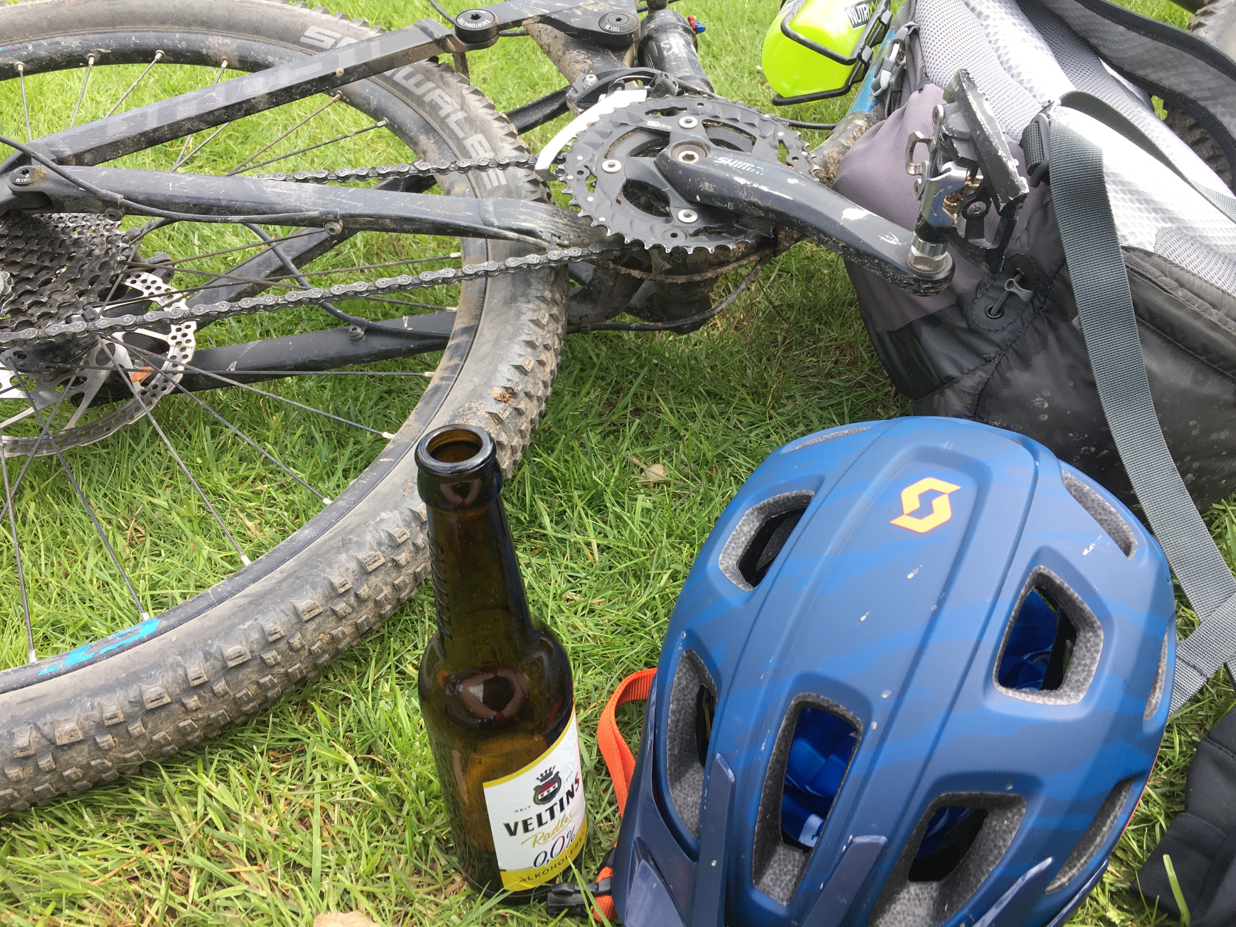 Schürre war auch so nett einem von einer Panne getroffenen Mitstreiter seinen hochwertigen 29er-Schlauch zu schenken. Gutmenschen werden heute leider zu sehr verteufelt. Ich mag so Menschen.
