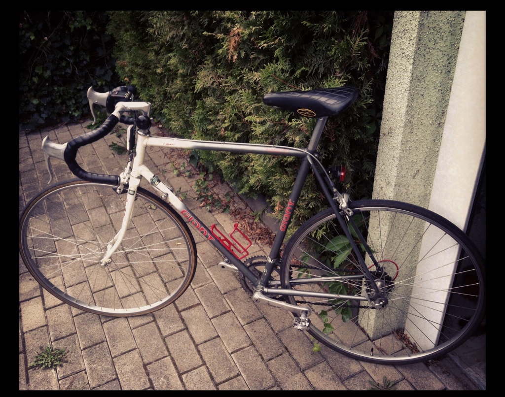 Jetzt hab ich mich mal dran gewagt. Der alte Mountainbiker bestieg ein ungewohntes Gefährt. Es handelt sich um ein Rennrad aus den 90ern. Genauer gesagt, ist es ein Pacer von der Marke Giant.
