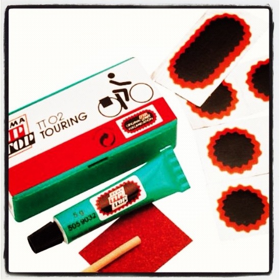 Wir (also Oli) wollten eine Abkürzung über Bahngleise nehmen! Dennis‘ MTB und mein 29er steckten Bahnschwellen locker weg! Nicht so der Crosser von Oli. Plattfuß! Die Panne war zum Glück am Ende der Tour! Sein Flickzeug war noch originalverpackt von 1990. Prima!