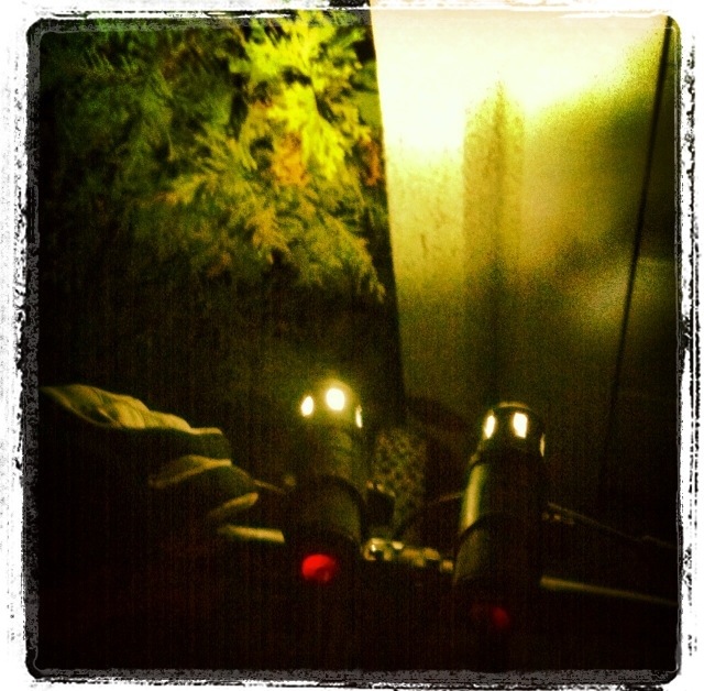 Sind etwa die gleiche Runde gefahren wie bei der Kacke-Tour! Berge, Golfplatz, Schöllinger Feld, Spielbrink, Birkenwäldchen, Geweke, Kipper und zurück! ca 20 km Stecke. Wir haben alle Hundehaufen großflächig umfahren! Hatten ja jetzt den Durchblick! 1800 Lumen sind echt hell. Oli’s Lichtkegel müsste Herr Baumgartner aus dem All gesehen haben. Steht der eigentlich noch immer da oben und wartet auf besseres Wetter?