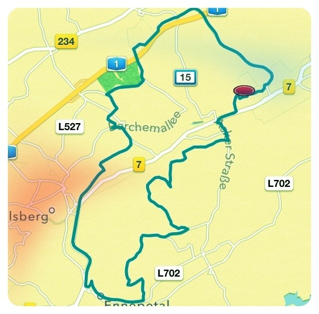 Nachdem wir uns gestern so übel verfranst hatten, habe ich heute das Wetter genutzt und versucht die Route im Hellen zu finden. Nachdem ich eine Steigung mit gefühlten 89 Grad absolviert hatte, wusste ich: Scheiße, wieder vergurkt. Dafür war ich schnell in Altenvoerde. Die Strecke können wir mal zusammen fahren. Aber bergab. Damit keiner motzt!