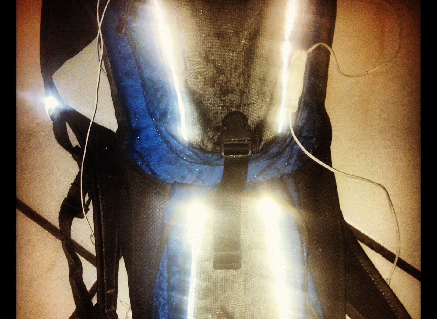 Erkenntnisse: meine Radschuhe sind nicht wasserdicht, das IPhone schon irgendwie. Da ich ja postiv denke ist zu erwähnen, dass mein Rad jetzt schön sauber ist. Hier mein nasses Camelback! Auf der Tour hab ich das IPhone stecken lassen. Also kein Foto vom Regen!